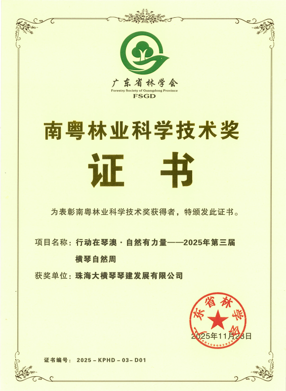 冬藏万物,捷报传春。近日,“行动在琴澳·自然有力量”2025年第三届横琴自然周系列活动项目,凭借突出的科普成效与社会影响力,荣获“第七届南粤林业科学技术奖(科学普及奖)”、“广东省自然教育优秀活动样板”和“全国湿地生态产品优秀创新案例”等三项权威奖项。横琴自然...